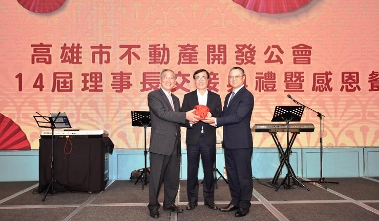 高雄市不動產開發公會,昨晚舉辦第13、14屆理事長交接典禮,由高雄副市長李四川代表韓國瑜市長,前來會場頒發證書與見證交接,全體理監事共同站台表達對新理事長黃炯輝的高度支持。該公會第14屆新任理事長暨巴巴事業董事長黃炯輝表示,將全力推展會務,持續與公部門互動溝通,爭取修正不合時宜建築法令,讓高雄建築業持續發展與維持合理經營空間。