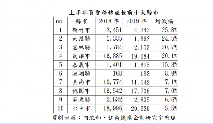 依據內政部最新統計資料,今年上半年買賣移轉棟數達14.4萬,跟去年同期相比增加5.6%,是從2015年以來上半年買賣移轉棟數新高,六都中以高雄市成長最多,年增20.1%,新竹市則榮登上半年移轉冠軍,專家表示,若下半年表現持穩,全年可望達28萬棟。