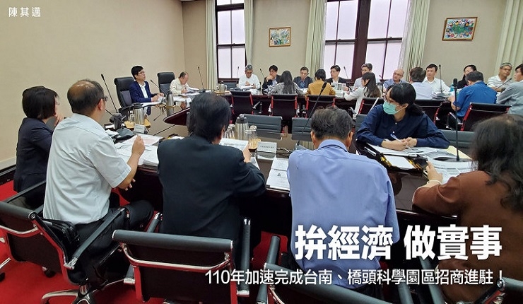 陳其邁說,他今天召集國發會、科技部、內政部及環保署,針對台南科學園區擴充案及設置橋頭科學園區,盤點開發時程。因應美中貿易情勢發展,許多科技大廠開始重新調整全球投資布局,台灣成為外商及台商投資的新據點。