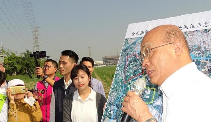 蘇貞昌上午南下視察台糖新市看西農場,黃偉哲、立委參選人郭國文、林宜瑾等人都出席,南科管理局副局長鄭秀絨簡報時表示,南部科學園區面積共1610.13公頃,包含台南園區(1043.15公頃)及高雄園區(566.98公頃),因台南園區土地出租率達93%,發展已漸趨飽和,為吸引更多上下游產業(包括材料、設備廠商)進駐,使半導體產業聚落更完整、更具競爭力,也落實園區未來10年產業發展規劃,台南園區有擴大需要。