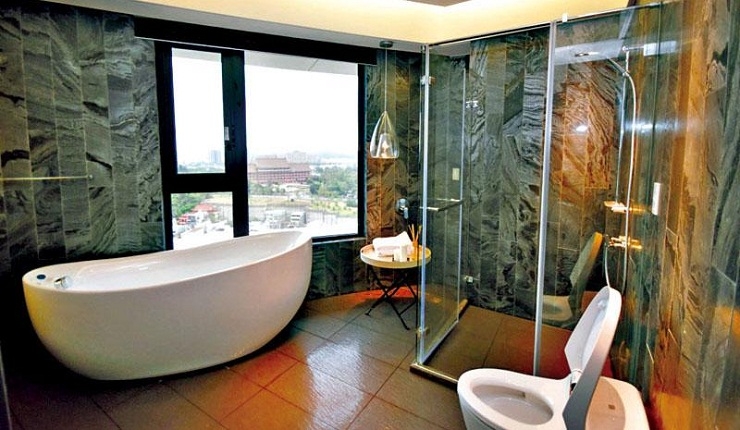 緊鄰澄清湖風景區的圓山別墅特區,景觀豪宅大樓供給稀有,但澄清湖廣達375公頃的水景與綠地空間,也成為景觀豪宅大樓設計浴室的最佳借景對象。上揚國際實業副總經理施棟瀝認為,市區雖然不乏面對公園綠景的景觀豪宅大樓,但高樓林立,即使浴室開設大面賞景窗,私密維護仍是問題,但面對澄清湖的浴室空間,相對私密維護性較高,也能讓住戶沐浴時,享有開闊舒適的視野,增添沐浴浪漫情趣。