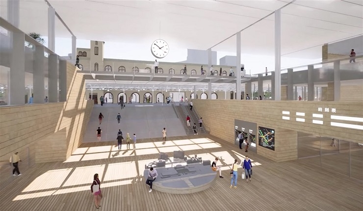 另外,新建下沉廣場將串聯東、西兩區,成為都市交匯節點,旅客可漫逛地面層的商店街,或透過車站穿堂層到地下2樓月台層搭車;高棚式的大屋頂設計,以結構與遮光隔柵的疏密變化,創造出獨特的光影氛圍。