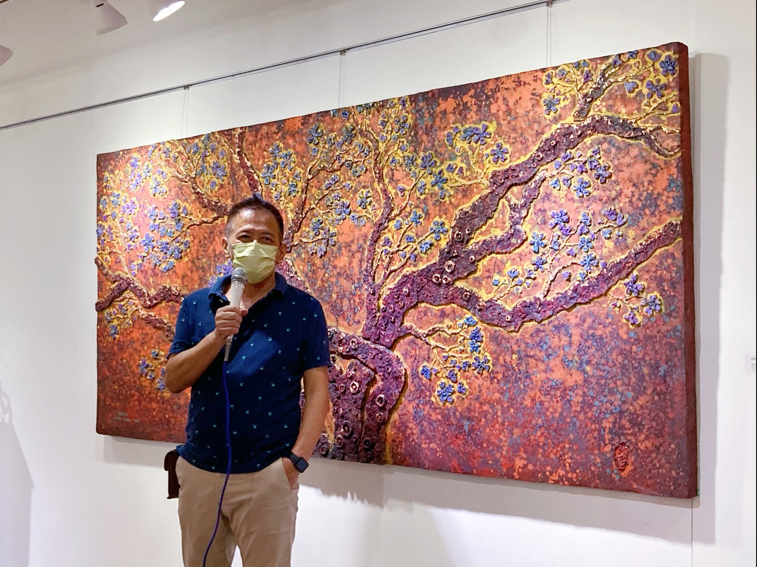 桃花源或許只是一場夢,但悠遊於曾英棟充滿能量與色彩的作品中,我們卻能以最純真的心觀夢,如藝術家別名「阿舍」般富足、參透且自在;也如藝術家所創立的「甘樂阿舍美術館」外那方綠意盎然、生氣蓬勃的花園,一切皆由此孕育生長,完整了藝術與精神的歷程。