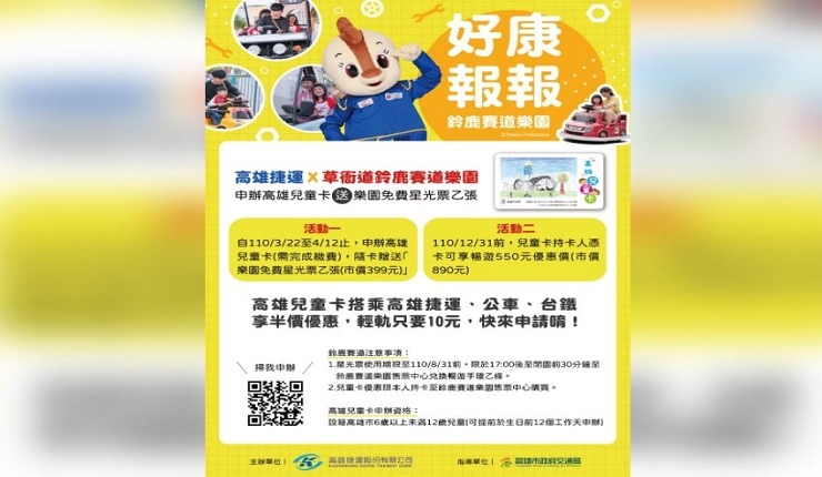 高雄捷運與草衙道鈴鹿賽道樂園推廣高雄兒童卡,推出多項優惠活動。圖/高雄捷運公司提供