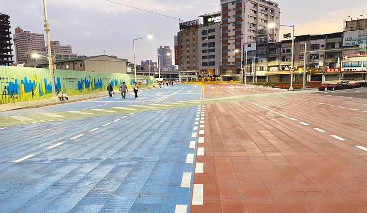 高雄中博高架橋拆除作業完工通車,施工團隊7日晚間完成所有工程進度,取而代之的站西路8日上午6時準時通車。(洪浩軒攝)