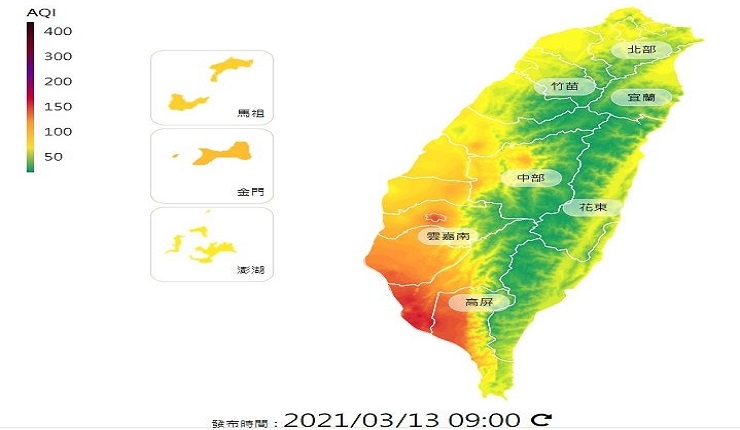 高屏空品區局部地區達紅色警示等級。 圖/空氣品質監測網