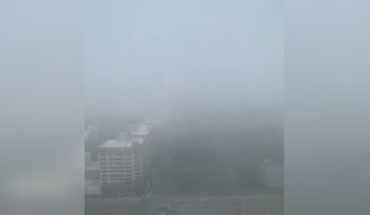 空汙嚴重,民眾今日從高雄鼓山住家望出去一片霧茫茫,建築物幾乎被掩蔽。圖/讀者提供